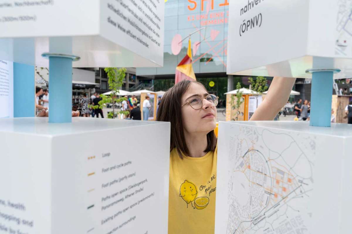 über Kreativmethoden bis hin zu quantitativen Abfragen und boten eine breite Varianz von Tools für unterschiedlichste Zeitbudgets und Beteiligungsvorlieben der Teilnehmenden. Neben Erwachsenen waren durch Angebote für Schulklassen explizit Kinder und Jugendliche eingeladen, ihre Ideen einzubringen. Aktionen der lokalen Kunst- und Kulturszene wurden in die Ausstellung integriert